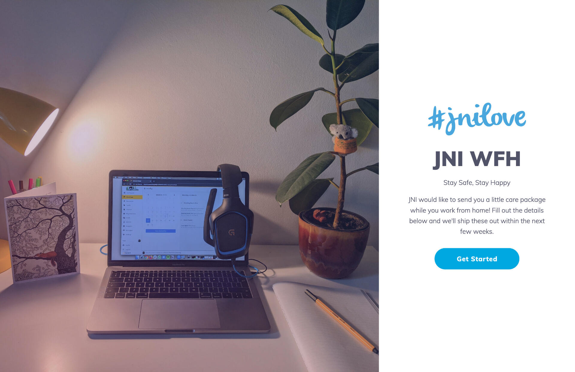 Your work-force is now a WFH-force, use this microsite to collect home addresses to ship them something – back to work PPE, WFH products, a tasty treat.
